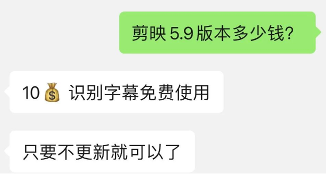 所有最近很多人在出售剪映5.9,因为这个版本识别字幕不收费,但是很多人更新后找不到这个版本了,所有也就又了这个剪映老版本市场。